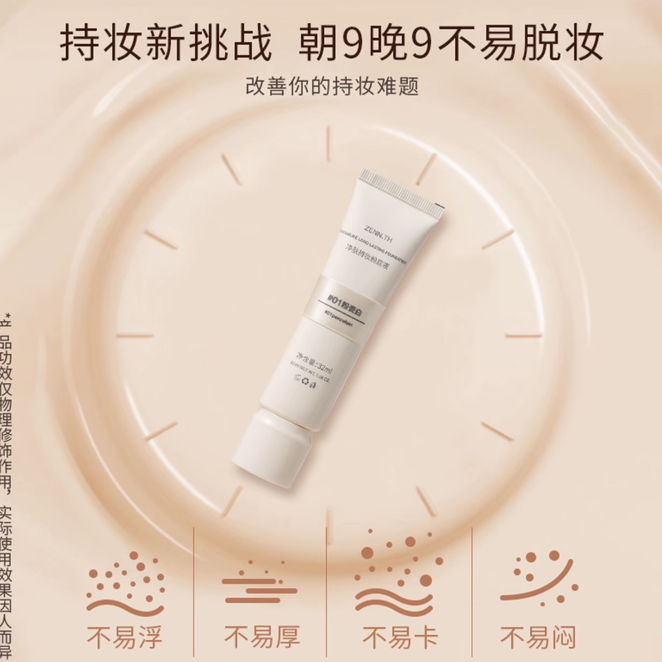 ZENN.TH净肤持妆粉底液学生平价防水防汗不易暗沉遮瑕雾面底妆